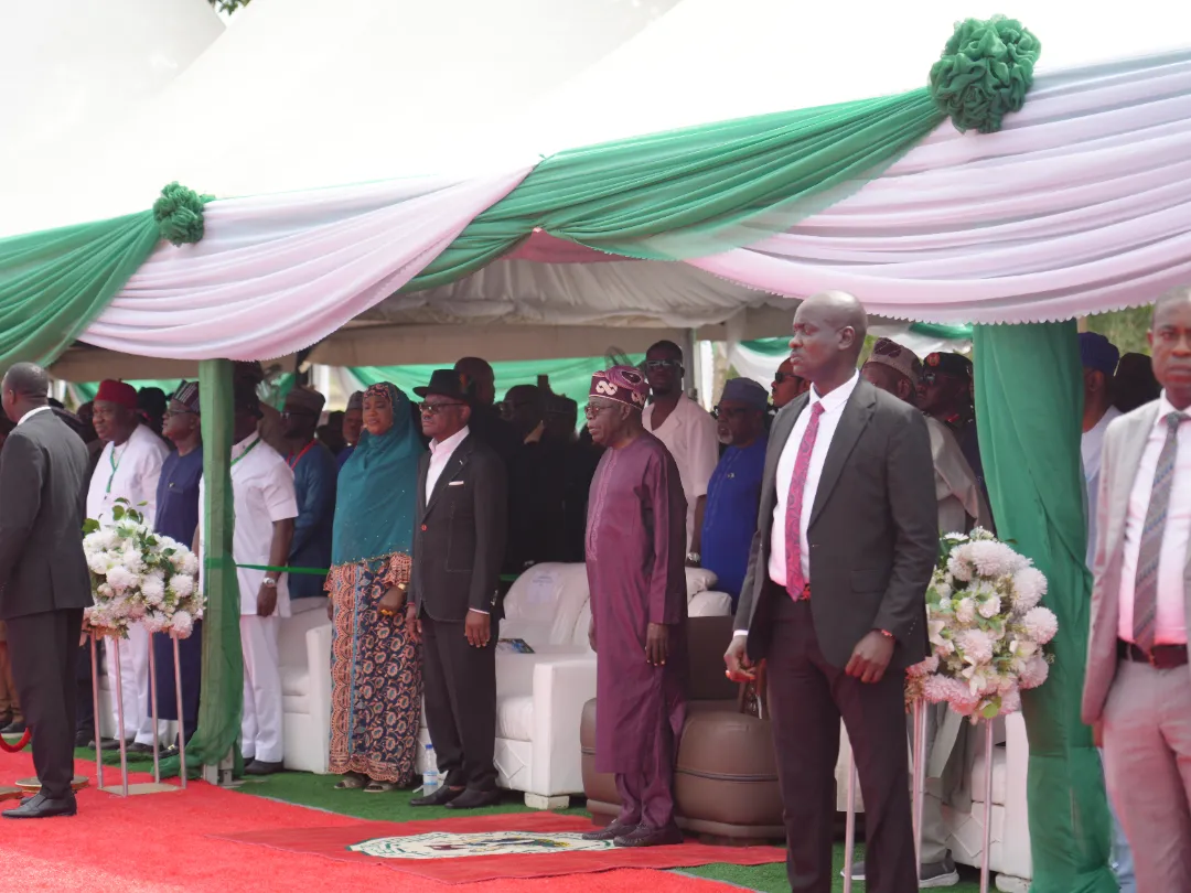 尼日利亞總統(tǒng)提努布為我司承建的阿布賈大供水項目竣工儀式剪彩,現場以中文致謝!